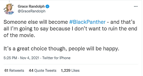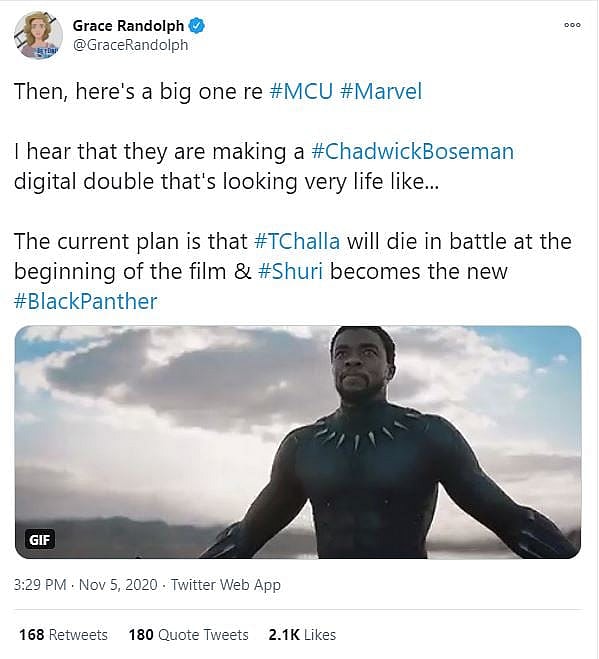 Scooper and critic Grace Randolph previously claimed that actress Letitia Wright’s Shuri would replace Boseman’s T’Challa as Black Panther.