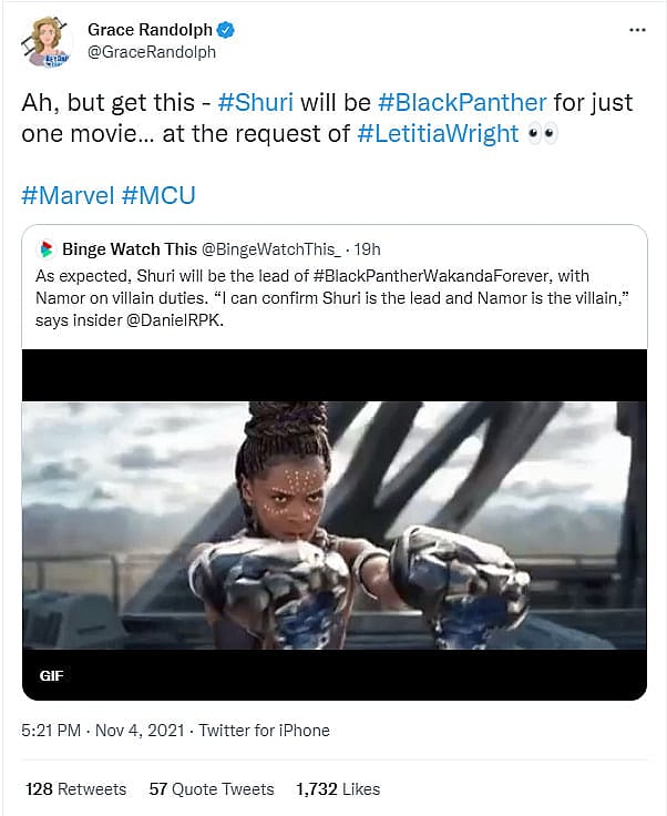 While Richtman would claim Shuri would become Black Panther, Randolph would add more details claiming, “Ah, but get this – #Shuri will be #BlackPanther for just one movie… at the request of #LetitiaWright.”
