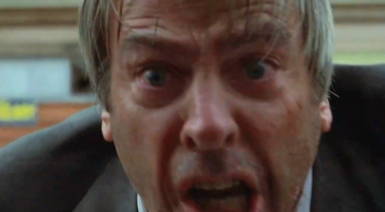 She confides to her coworker, Matthew (the late/great Donald Sutherland), that she suspects him of being an impostor. He brings her to his psychiatrist friend, David (the later/greater Leonard Nimoy). On the way there, a panicked man (the latest/greatest Kevin McCarthy) runs up to Matthew’s car. He pounds on the window while yelling about how, “They’re coming!” “Something terrible!” and “You’re in danger!”- before being struck dead in the street!