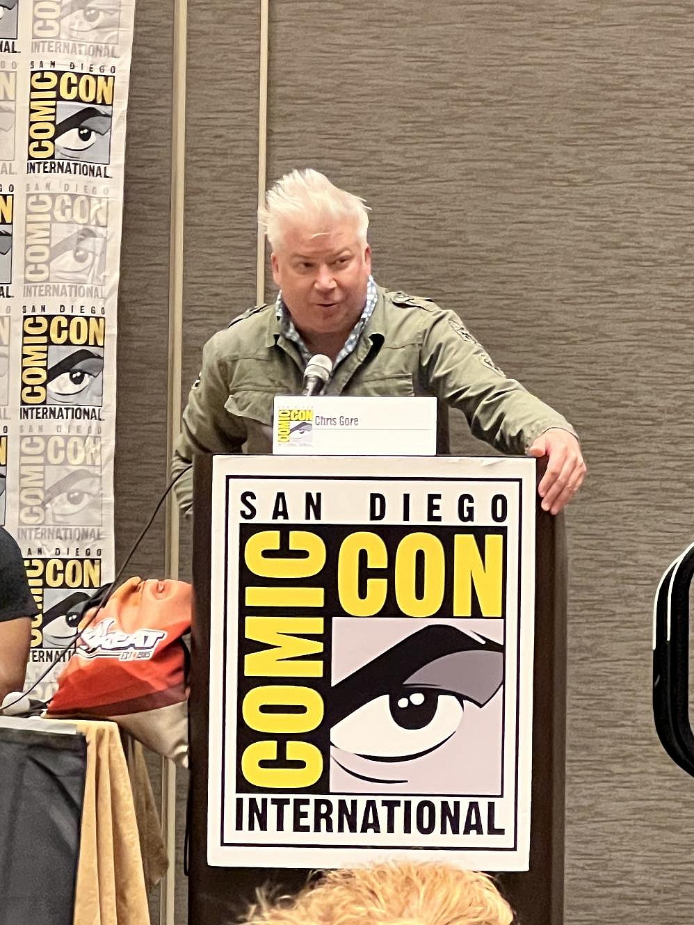 Gore packed the Marriot’s ballroom with a room completely full of fans and aspiring creators eager to hear wisdom from long-time independent creators. Several celebrities were in the crowd at the panel, including YouTuber ThatStarWarsGirl, comic-creator Dan Fraga, and Hollywood writer Marc Zicree (Babylon 5, Space Command). Several fans wore t-shirts of Eric July’s Isom comic character to support the Rippaverse.