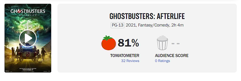 Joey Magidson at Awards Radar gives the movie a 3.5 out of 4. He writes, “Ghostbusters: Afterlife is everything you want it to be. Several moments legitimately gave me chills. Jason Reitman honors what came before while blazing a new trail forward.”