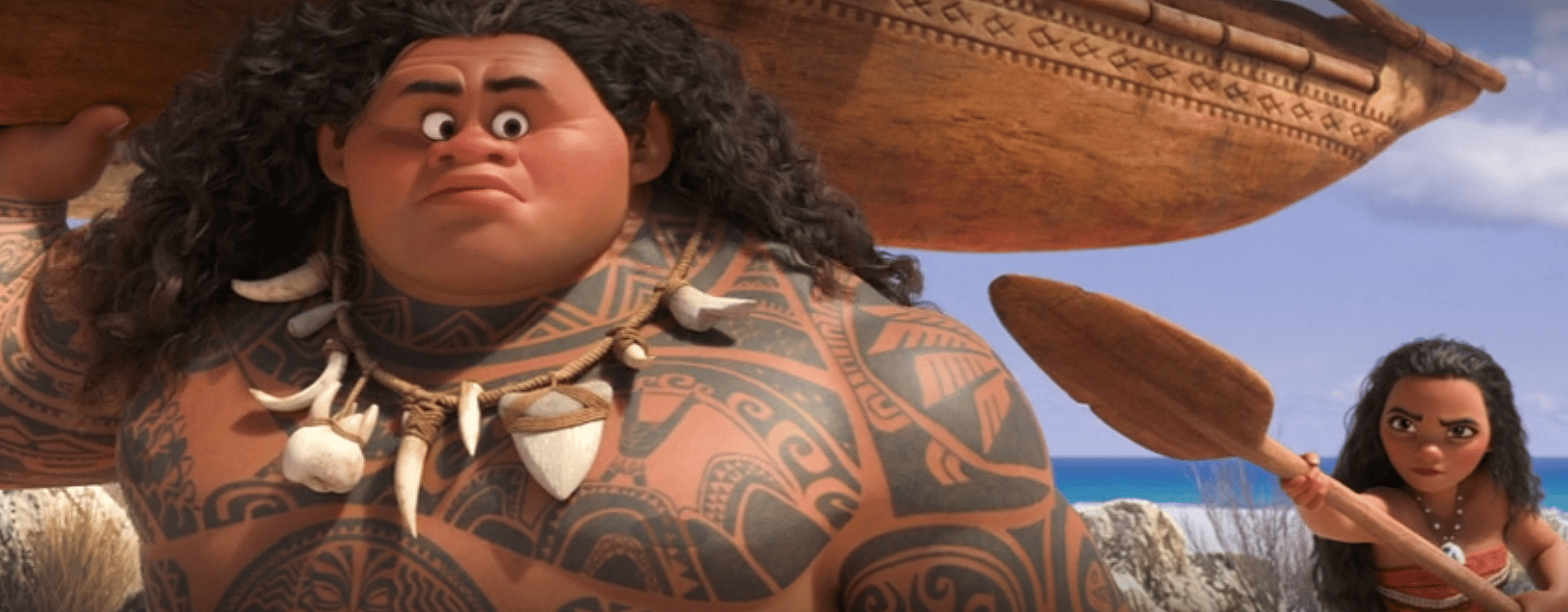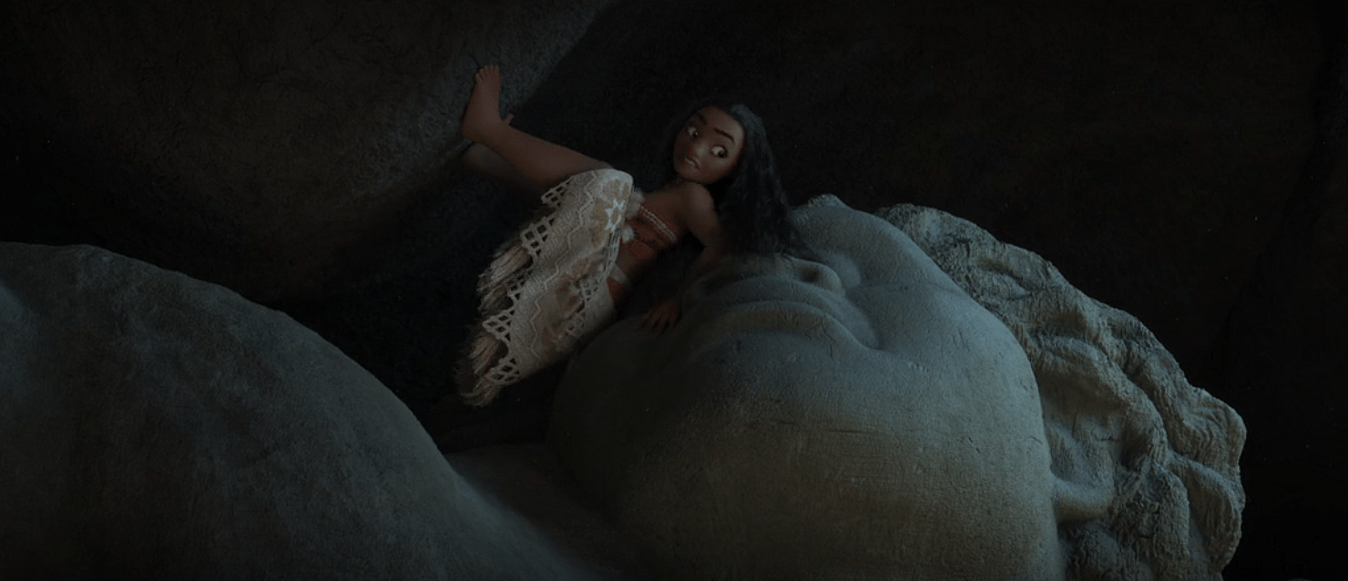 Pageau goes on to point to a scene where Maui locks Moana away in a cave and Moana escapes by toppling a statue of Maui.