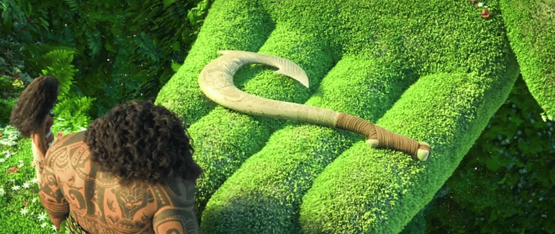 He explains the symbolism of the scene saying, “The toppling of Maui and the civilizing spirit he represents is the actual leitmotif of the entire movie.”