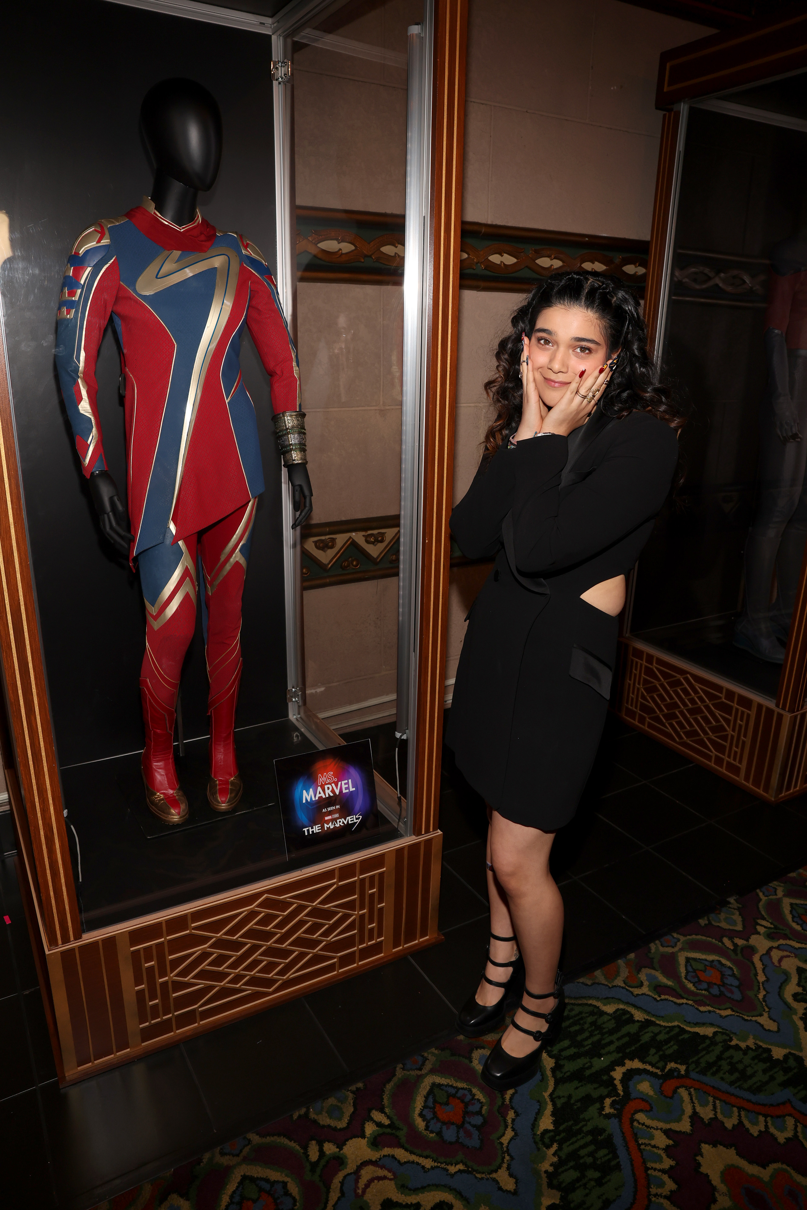 LOS ANGELES, CALIFORNIA – NOVEMBER 09: Iman Vellani attends THE MARVELS Fan Screening Surprise Talent Appearance at El Capitan Theatre in Hollywood, California on November 09, 2023. (Photo by Jesse Grant/Getty Images for Disney)