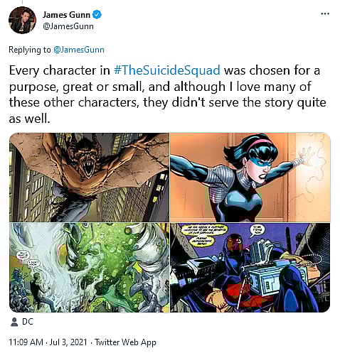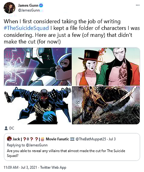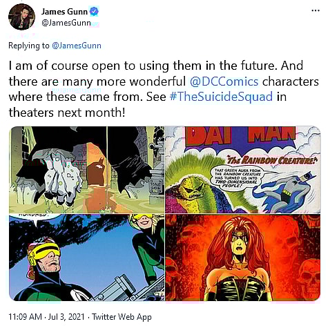 “And there are many more wonderful @DCComics characters where these came from,” he concluded. “See #TheSuicideSquad in theaters next month!”