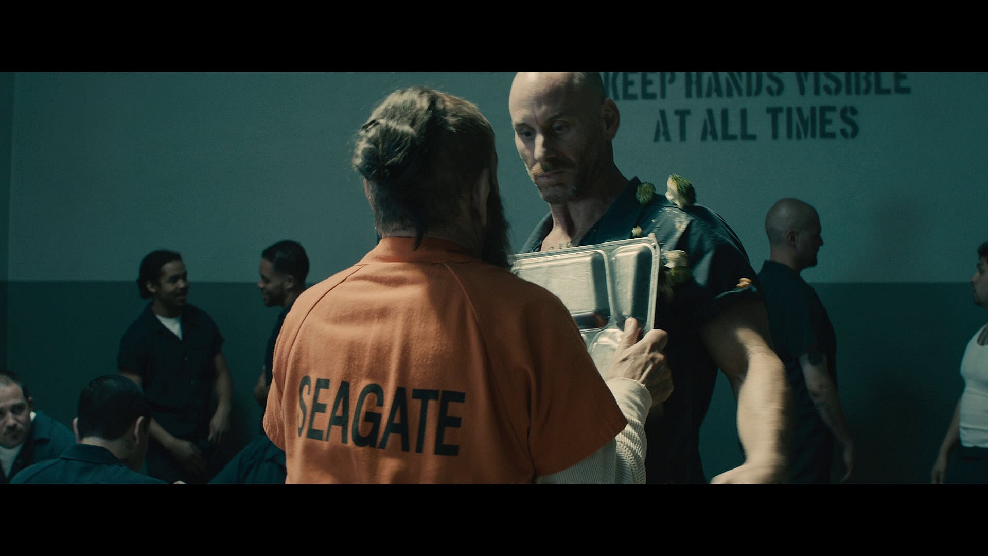 At one point during his stay, an absent-minded Slattery accidentally spills his lunch on a fellow inmate named White Power Dave (Matt Gerald).