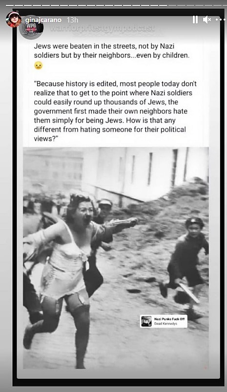 The post Carano was fired for did not denigrate anyone based on their cultural and religious identities. In fact it warned of doing so and how if one does so it can lead to horrific violence.