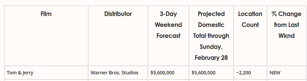 Box Office Pro had previously only predicted Tom & Jerry to earn $5.6 million in its opening weekend at the box office. That means Tom & Jerry outperformed those predictions by over 150%!