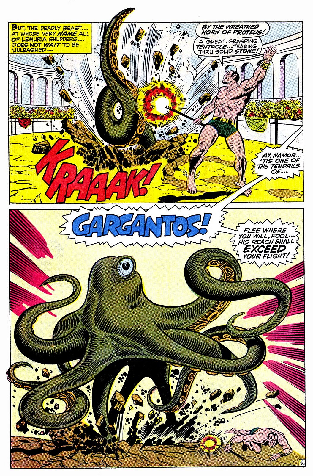 Appearing for the first time in Sub-Mariner Vol. 1 #13, the name Gargantos originally belonged to a one-eyed, tentacled sea-monster summoned by the villain Naga to protect him from the wrath of Namor.