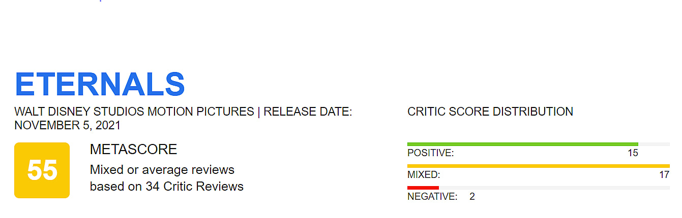 What do you make of Eternals’ box office projections being adjusted downwards after poor critic reviews?