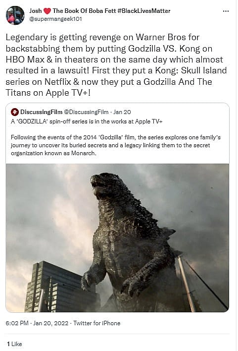 Others identify the cause as Legendary wanting revenge for Warner’s protectionary maneuvers when finally releasing GVK in theaters and on streaming last year that kept Legendary from selling their film to Netflix.