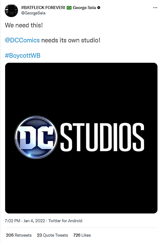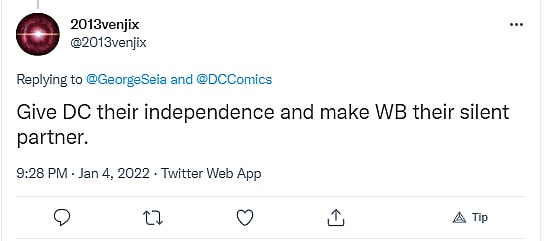 In a reply, @2013venjix saw the upside. “Give DC their independence and make WB their silent partner,” they said.