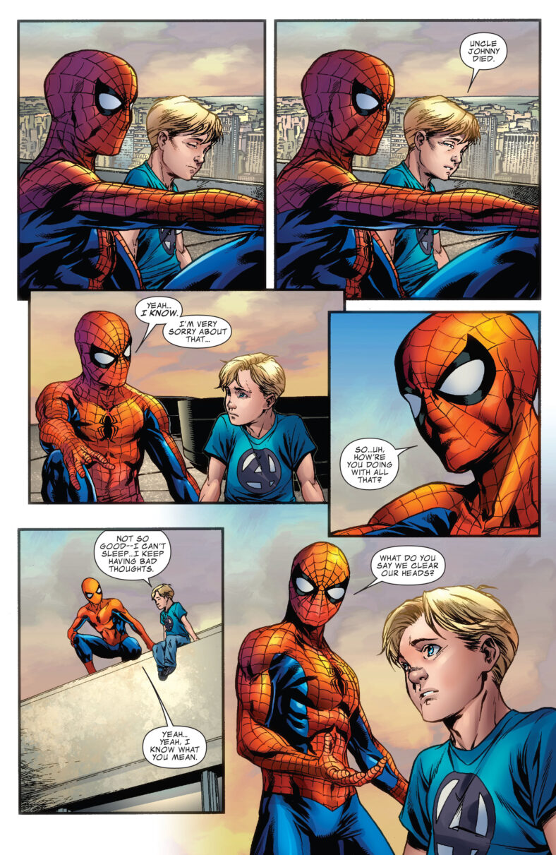 “Sue and Reed are relatable not just as partners, but also as parents. We understand their anxiety, fretting over the destiny of Val and Franklin just as I fret over my 9-year-old daughter’s future. I cherish the family intimacy of scenes in the Baxter Building and never doubt that these parents love their children and would do anything to protect their future. I know that Johnny and Ben would do the same.