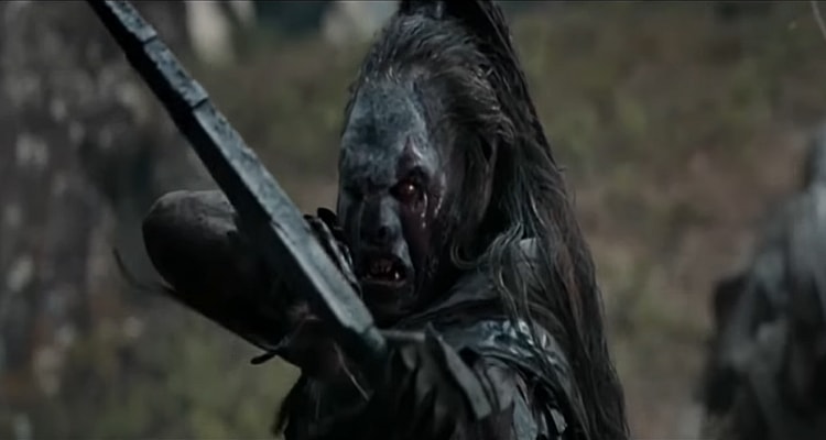 However, that was an orc from the Mines of Moria and not an Uruk-Hai. In The Two Towers, Tolkien writes, “In the twilight he saw a large black Orc, probably Uglu´k, standing facing Grishnakh, a short crook-legged creature, very broad and with long arms that hung almost to the ground. Round them were many smaller goblins. Pippin supposed that these were the ones from the North. They had drawn their knives and swords, but hesitated to attack Uglu´k.”