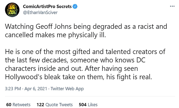 Fisher added that this conversation was the last time he had spoken with Johns. This is is telling, as it indicates he hardly talked to the veteran comic writer and film producer at all.