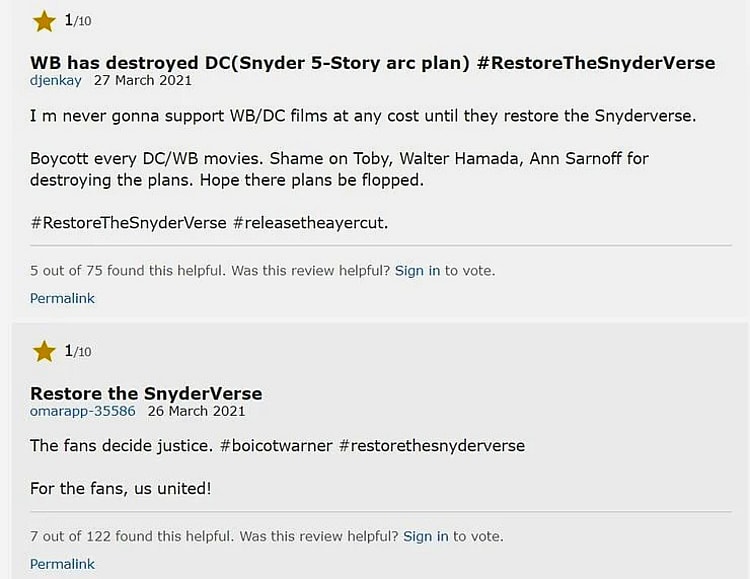 DangerVille also shared more of the negative reviews wherein Snyderverse fans declared they were united, that they were the decisiomakers, and that Warner should be boycotted.