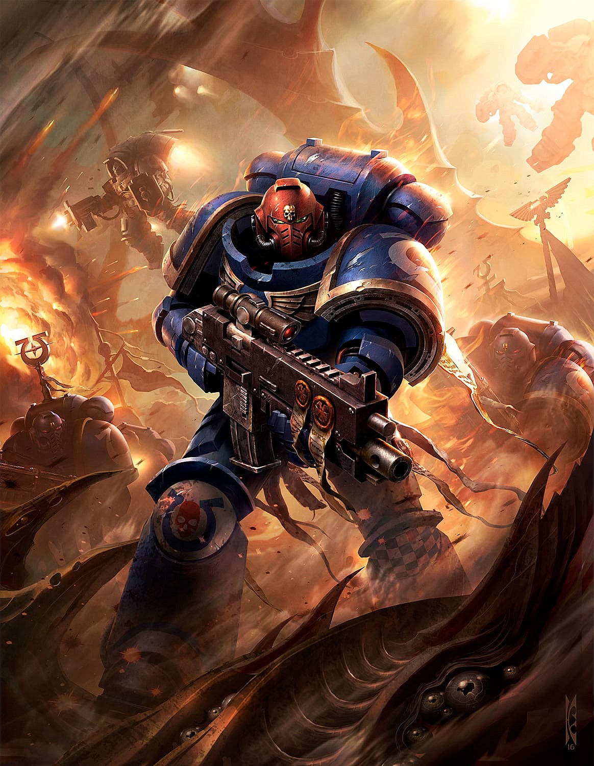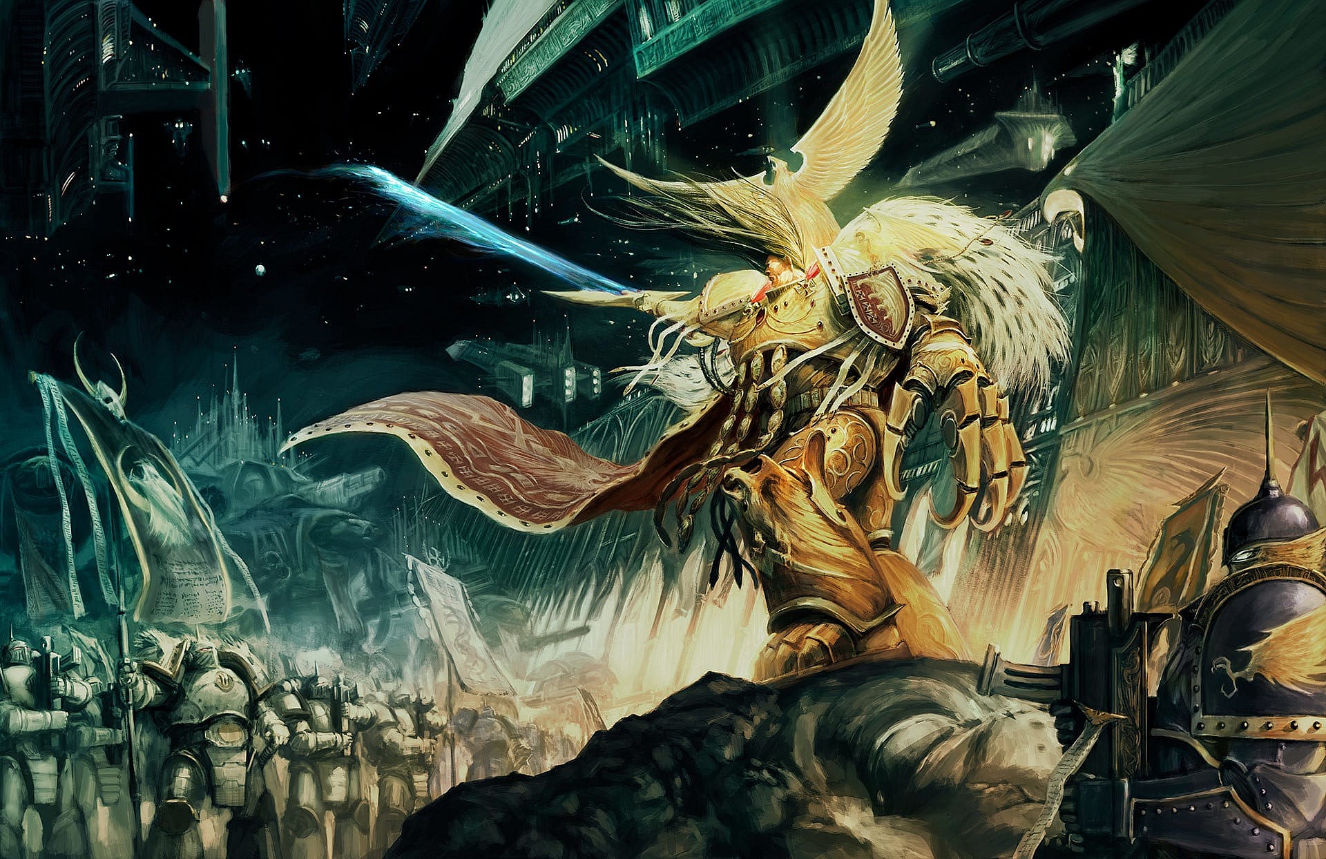 It adds, “The threats to humankind’s empire are many — traitors driven by the fires of ambition, alien empires sworn to reclaim the stars, and the corruption of reality by malevolent gods. ”