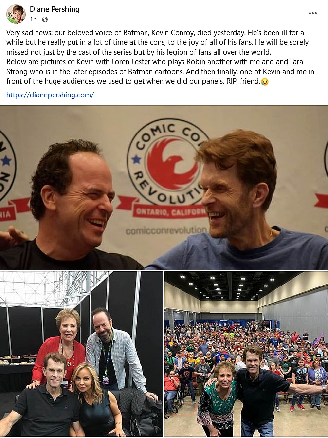 Likewise, Batman: The Animated Series producer Paul Dini, praised how “Kevin brought a light with him everywhere, whether in the recording booth giving it his all, or feeding first responders during 9/11, or making sure every fan who ever waited for him had a moment with their Batman.”