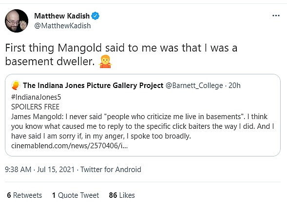 However, Mangold already has a pension for lying when it comes to Indiana Jones. Back in July 2021 Mangold got caught lying about degrading YouTuber Matthew Kadish who expressed his concerns about Indiana Jones on Twitter.