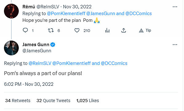 Among the names Gunn has teased are Dave Bautista and Chris Pratt, two who aren’t a huge shock, and Mantis actress Pom Klementieff. “Pom’s always a part of our plans!” he posted last November responding to speculation. She already appeared in The Suicide Squad as a barfly in Corto Maltese so a foot, and a potential plot thread, are in the door.