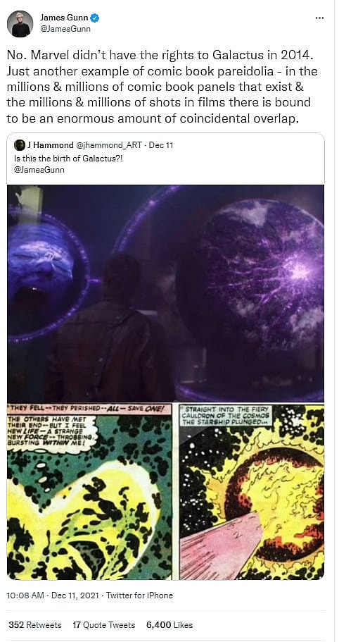 Gunn would respond writing, “No. Marvel didn’t have the rights to Galactus in 2014.”