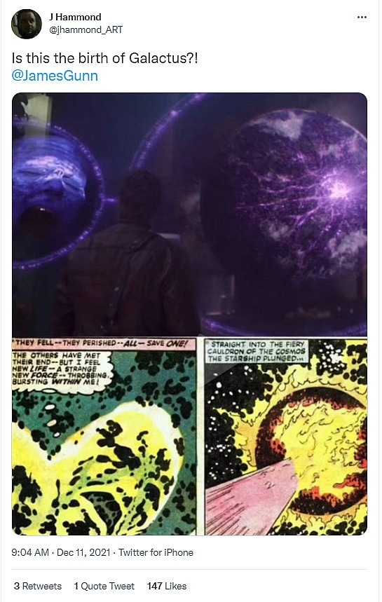 The user asked Gunn, “Is this the birth of Galactus?!”
