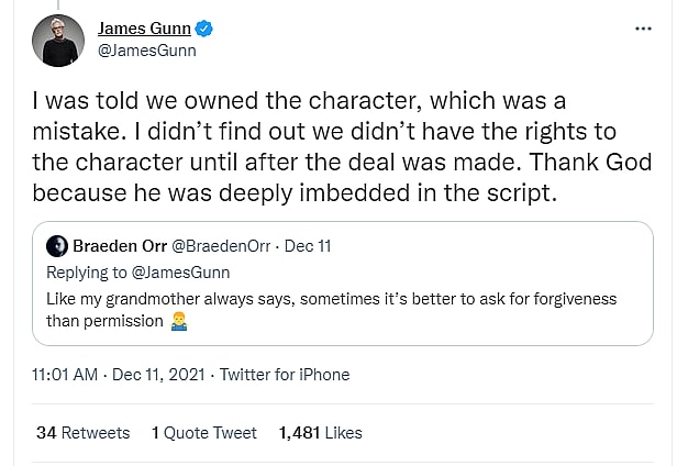 He explained to one user, “I was told we owned the character, which was a mistake. I didn’t find out we didn’t have the rights to the character until after the deal was made. Thank God because he was deeply imbedded in the script.”