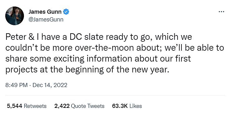Gunn previously indicated he would provide an update on the DCU slate “at the beginning of the new year.”
