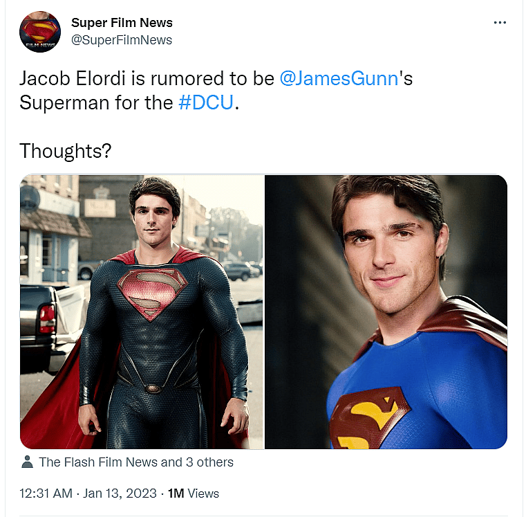 They tweeted, “Jacob Elordi is rumored to be James Gunn’s Superman for the DCU.”