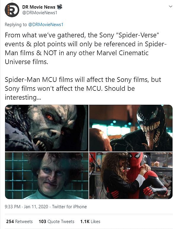 DR Movie News reported back in January that “the Sony Spider-Verse events & plot points will only be referenced in Spider-Man films & NOT in any other Marvel Cinematic Universe films.”