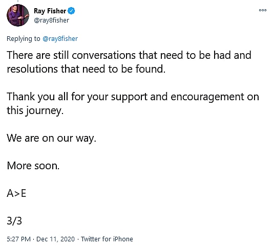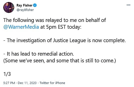 Related: Ray Fisher Responds To Conclusion Of WarnerMedia Justice League Investigation