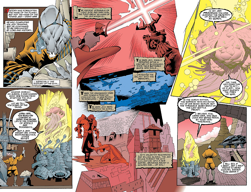 She said, “We’ve been talking a lot about going well into the past and one of the things that’s really knitting this all together, obviously, are the Jedi. What happened with the Jedi overtime, much like history? How did the Jedi evolve? They were wiped out with Order 66 then they gradually have been coming back. The question that we’re going to ask with New Jedi Order and with Rey is: Does the galaxy need them anymore? Do they want them back?”