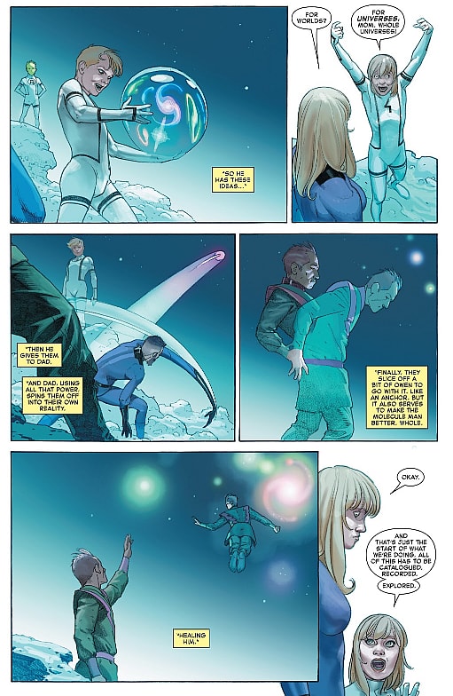 The series ends with Richards alongside his family and Molecule Man repopulating the entire Multiverse.