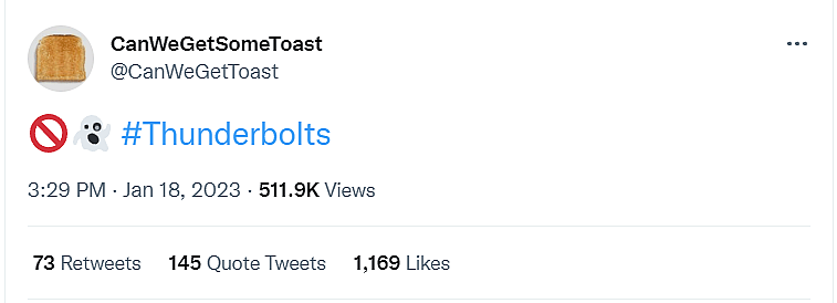 Earlier this month, the user tweeted a cancel and ghost emoji next to each other with the hashtag Thunderbolts.