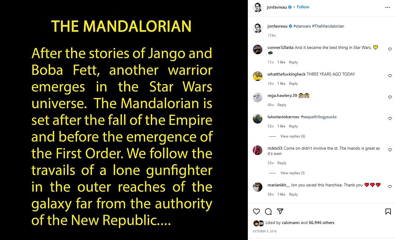 In an Instagram post, Favreau also revealed an opening crawl for The Mandalorian.