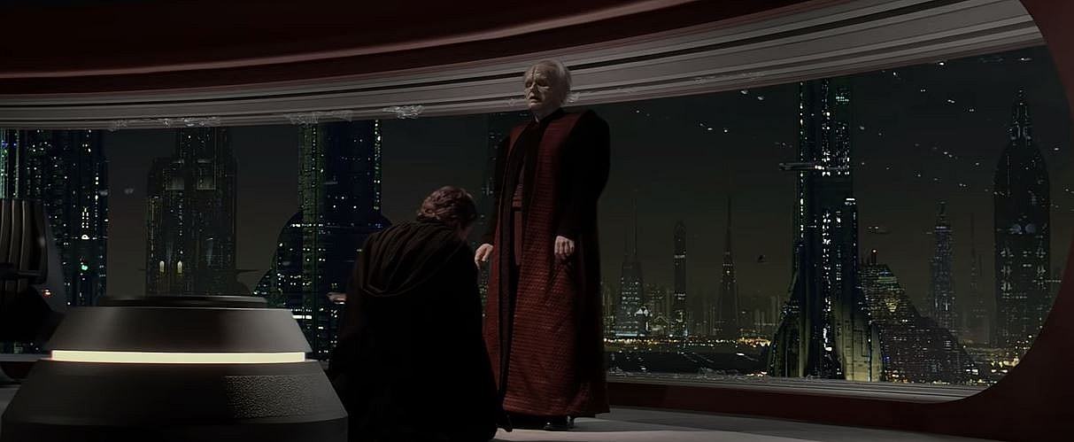 Darth Sidious tells Anakin, “Become my apprentice. Learn to use the Dark Side of the Force.”