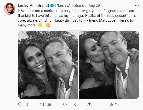 The actress tweeted, “H/wood is not a meritocracy so you better get yourself a good team. I am thankful to have this man as my manager. Realist of the real, decent to his core, always grinding. Happy Birthday to my friend Matt Luber. Here’s to many more.”
