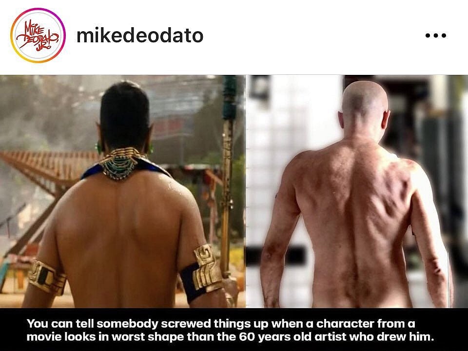 “You can tell somebody screwed things up when a character from a movie looks in worse shape than the 60-years-old artist who drew him,” Deodato Jr. wrote atop the image. In the image’s Instagram caption, the artist added, “Pencil lifting beats swimming anytime.”