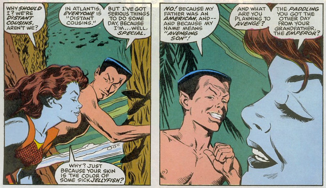 As you can see in the panels above, it’s hard to imagine that Namor grew up without love. His mother, Princess Fen, clearly loved him dearly. Not only did his mother love him, but he also drew the attention of the Atlantean who would become his primary love interest, Dorma.
