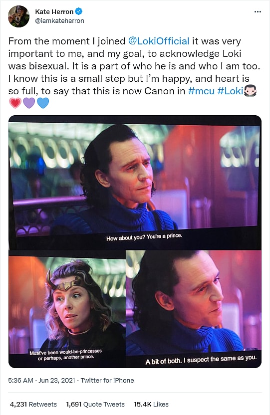 Herron tweeted back in June, “From the moment I joined Loki it was very important to me, and my goal, to acknowledge Loki was bisexual.”