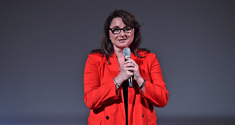 LOS ANGELES, CALIFORNIA - JUNE 29: EVP of Production at Marvel Studios Victoria Alonso speaks onstage at the Black Widow World Premiere Fan Event at Dolby Theatre on June 29, 2021 in Los Angeles, California. (Photo by Alberto E. Rodriguez/Getty Images for Disney)