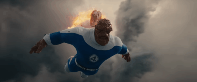 Back to the beard, Thing can be seen in the background of a few shots with it, but the rocky facial ‘hair’ is clear as day in the last sequence of the trailer. Johnny is flying like a rocket and suspending Ben with both hands while prodding him to say a line. It’s never uttered but you know what the line is.