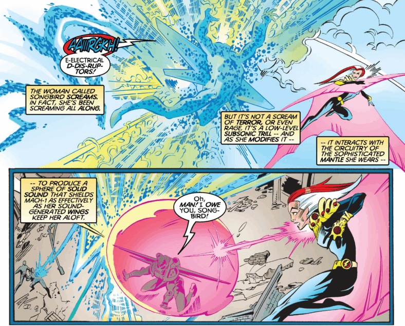 Formerly known by her super villain handle ‘Screaming Mimi’, Songbird served as a founding member of the original Thunderbolts team before ultimately betraying their leader, Zemo, and fully embracing the hero life, from there eventually earning the respect of Earth-616’s crime-fighting community and even being invited so serve on the Avengers.