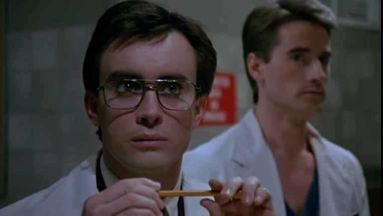 Well…almost! The reagent that he developed brings the dead subject back to a waking state of consciousness, but they’re also a mindless zombie-like revenant that kills everything in sight. It’s not perfect, but still a step in the right direction, and he needs the school’s resources to continue his work. Teaching at Miskatonic is renowned researcher, Dr. Carl Hill (David Gale), and he now has a particularly eager student signing up for his course.