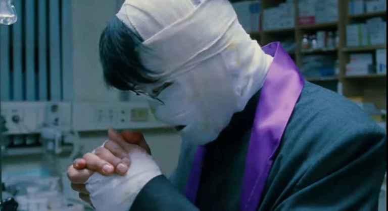 Unfortunately, the vaccine fails and leaves Sang-hyun dying from EV, but he receives a blood transfusion, and makes a miraculous full recovery. As you could imagine, this gets the attention of a lot of people, and the less-than-intelligent ones begin regarding him as a blessed saint who overcame death.
