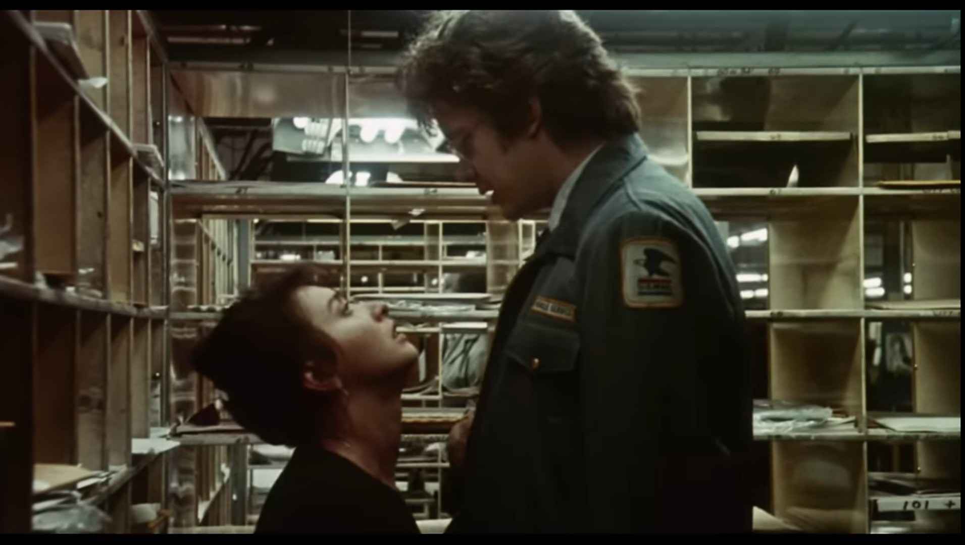 Then during the war, his entire platoon has a bad episode of hallucinations, or violent convulsing. He even ends up getting stabbed by an unseen enemy’s bayonet and survives (it seems) to get discharged, and divorced from his wife (Patricia Kalember). Following this, he decides to go work for the post office.