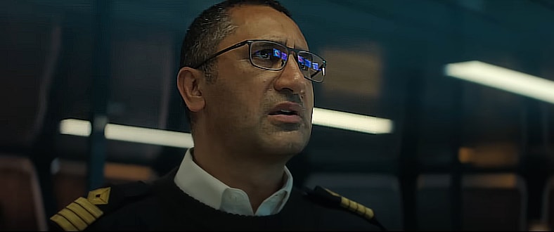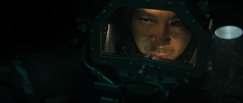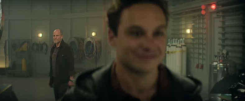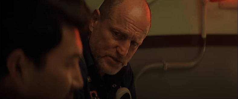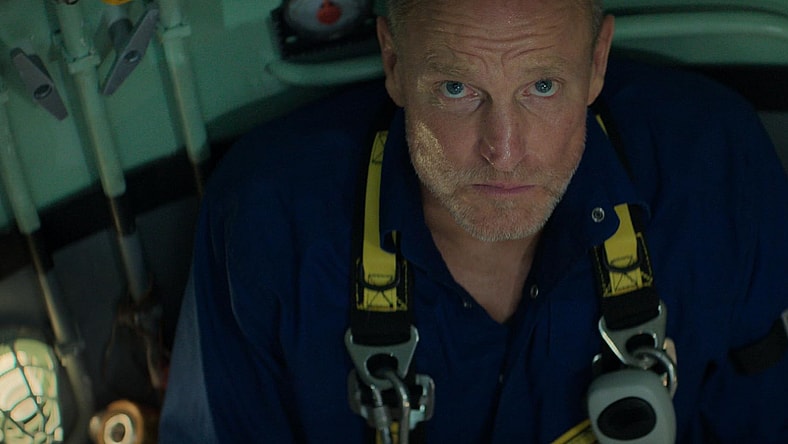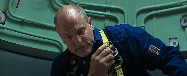 Duncan Allcock (Woody Harrelson), David Yuasa (Simu Liu), and Chris Lemons (Finn Cole) are working on the pipeline when a massive storm causes the ship to which they’re tethered to become unstable, forcing the trio to evacuate. As Duncan and David make it back, Chris is trapped. His tether is snapped, causing him to fall even deeper into the ocean with a complete lack of oxygen, which for any other diver would have meant certain death.