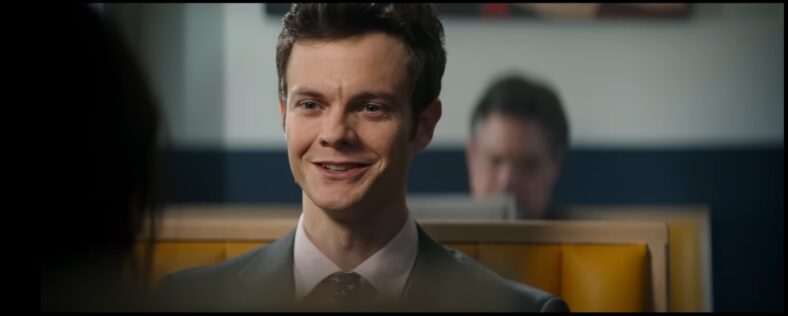 Jack Quaid, in a 180 from his sleazy user-abuser antagonist in Companion, is much more likable and endearing as Nate, albeit more milquetoast and pitiful too. He’s nervous and second-guesses himself a lot. He’s led a rather dull life with no friends except the guy he games with online (Jacob Batalon) and always played it safe. But then that love bug bites, and the tone shifts from sad REM music to the happy-go-lucky tune of “I Believe In A Thing Called Love” by The Darkness.