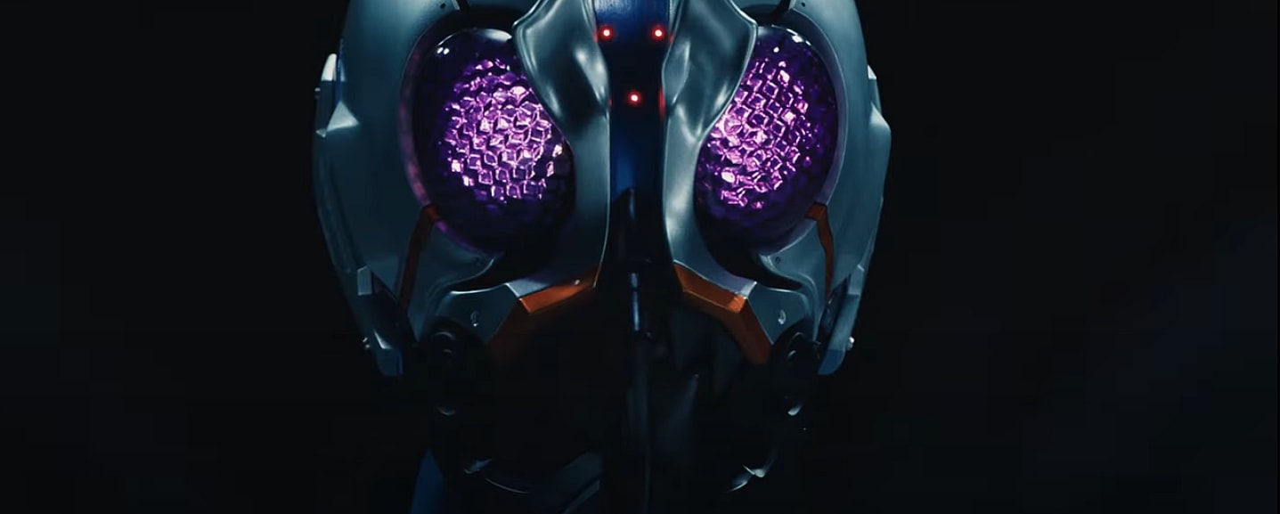 Motorcyclist Takeshi Hongo (Sosuke Ikematsu) is kidnapped by the nefarious organization known as SHOCKER (which this time is an acronym for Sustainable Happiness Organization with Computational Knowledge Embedded Remodeling) and they turn him into an augmented cyborg grasshopper, or “Aug,” that breaks free and vows to fight against their twisted tyranny rather than serve them.