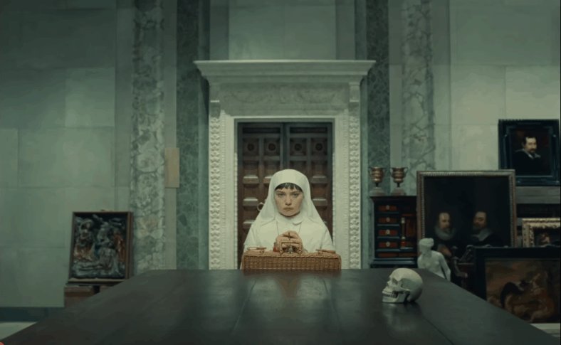 He has to prepare for the inevitable and pass his operations to an eligible heir. He has ten kids, nine of them sons in an ersatz Italian boarding school, but he only trusts one: his daughter Liesl (Mia Threapleton). The problem is she is a nun in the making, and didn’t inherit her father’s amoral world view. There’s also a question of her paternity. She may be Korda’s daughter, or it could be her uncle Nubar (Benedict Cumberbatch), Zsa-Zsa’s half-brother, or rather, “The son of my father, your uncle Nubar.”